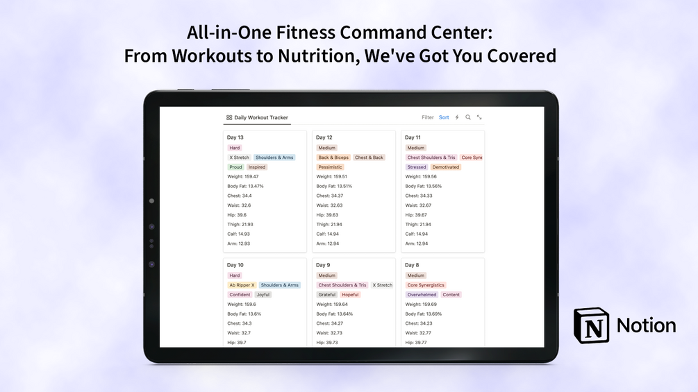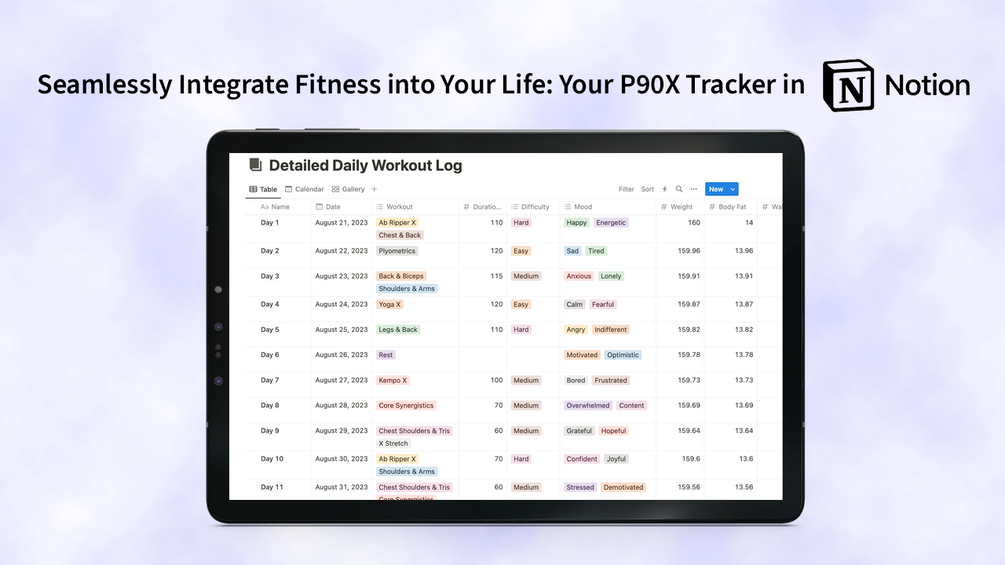 Transform your P90X journey with our comprehensive Notion tracker, meticulously designed to cover every aspect of your fitness regimen. From planning to performance, nutrition to recovery, our tracker offers a centralized platform for all your fitness needs.